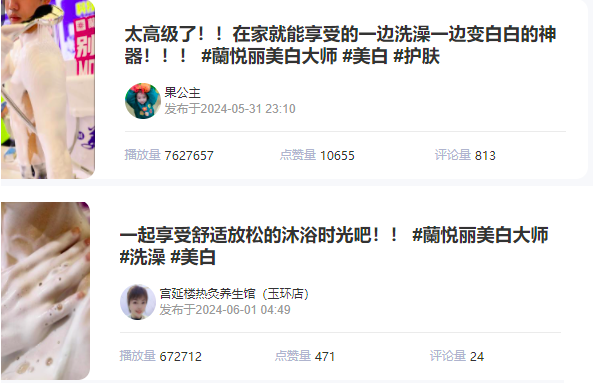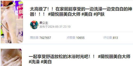 籣悦丽美白大师,其中单个视频更是取得了最高 70w+播放量的惊人成绩。话题播放1400w+