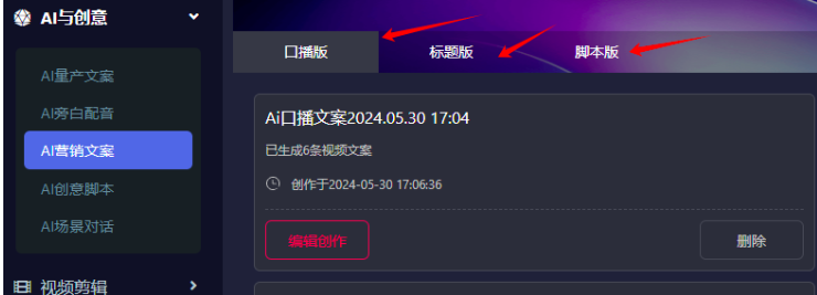 01.AI智能,输入关键词就能生成口播版、标题版、脚本版文案
